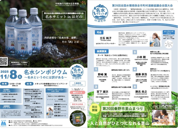 そして11月8日に開かれる全国名水サミットでは、専門的な学びと体験を通じて「名水の里秦野」の魅力をさらに深く知ることができます。