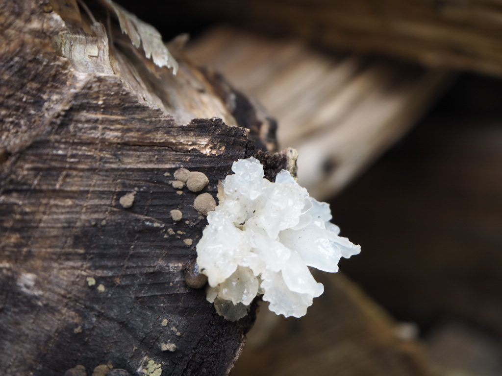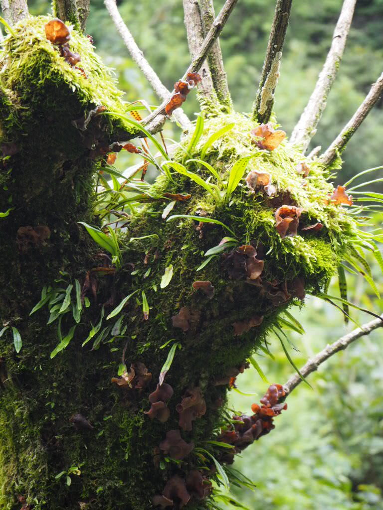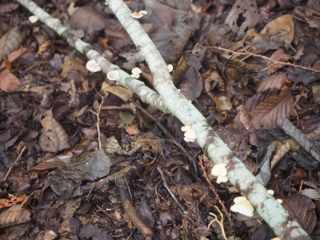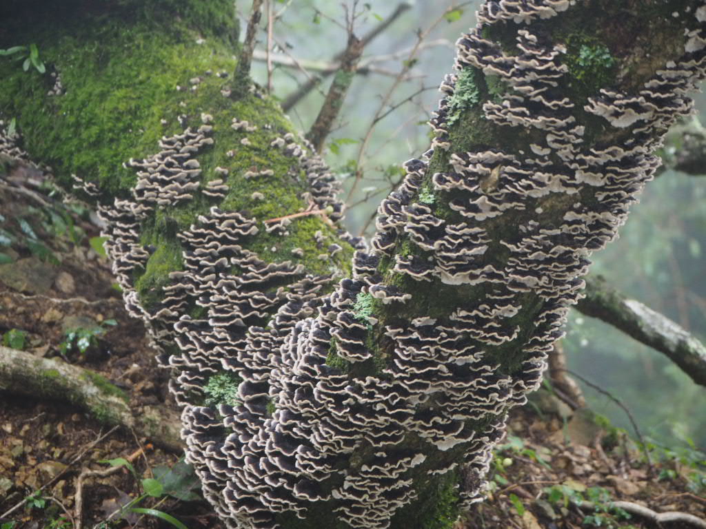 よく目をこらすと落ちた枝にもキノコが生えています。足元・左右に目を配りながら山道を行くと五感が研ぎ澄まされるよう。