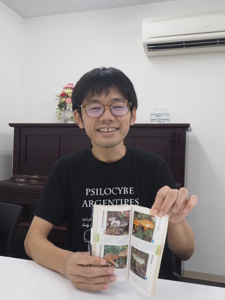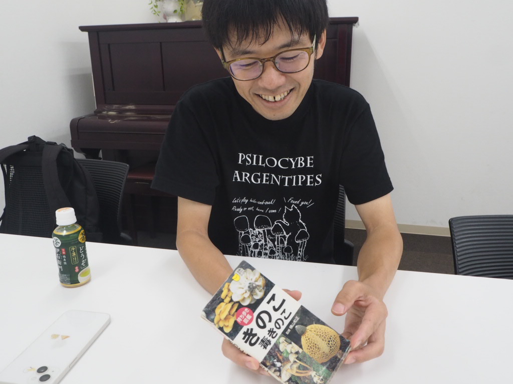 取材前、記者は「キノコ探求者を前に、食べる専門の自分で良いのか」と緊張し取材日を迎えました。緊張を和らげてくれたのは露木さんの穏やかなお人柄。メガネのキノコ模様について聞くと「メガネ屋さんで“きのこめがね”が販売された時に思わず買っちゃいました。知り合いの作家さんのイラストなんです」と微笑みます。