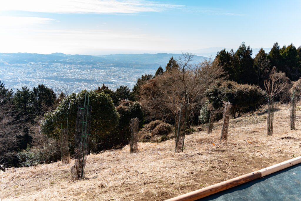 今回整備が行われる菜の花台園地は、秦野市街からヤビツ峠へ向かう途中にあります。標高はなんと570m。展望台からは丹沢山系に留まらず、富士山から江の島まで拝むことができます。駐車場も備えており、市街地の夜景もきれいに見えることから、市内でも人気の高い観光スポットです。