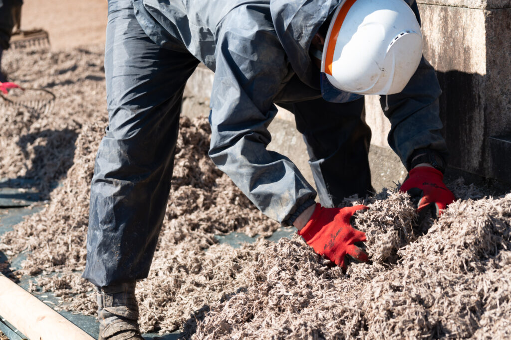 最後に、細かいところをコテのような器具を使って丁寧に調節しながら、さらに圧縮していきます。筆者も少しだけ触らせてもらいましたが、ウッドチップの弾力性にびっくりしました!しっかりと敷き詰められています。すべての工程がほぼ手作業で行われているので、改めて大変さを実感しました。