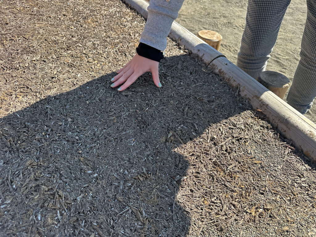 実際に舗装されたウッドチップの上を歩いてみたい!ということで、令和6年の夏頃に施工された、比較的新しい緑水庵のウッドチップ舗装を見に行ってきました。固まったあとはさらに弾力性が増していましたが、歩くとふかふかで柔らかく、これならハイキング時も足に負担はかかりません。菜の花台園地のウッドチップのお披露目がより楽しみになりました。