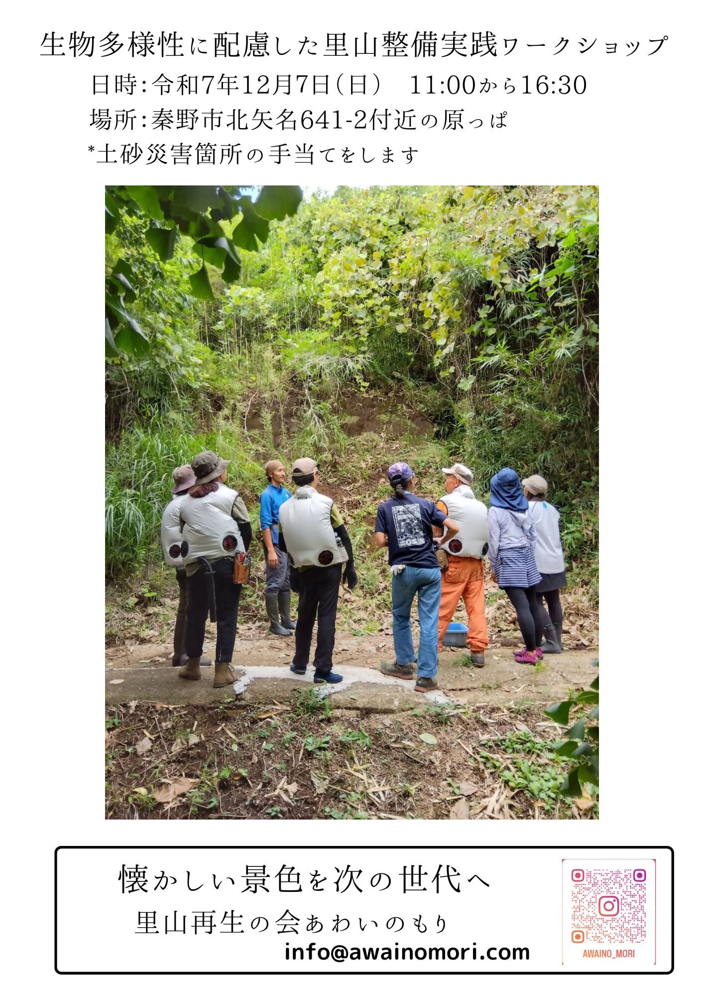 あるいはHP、Instagramのダイレクトメールに「里山整備ワークショップ参加希望」とタイトルをつけてお申込みください。