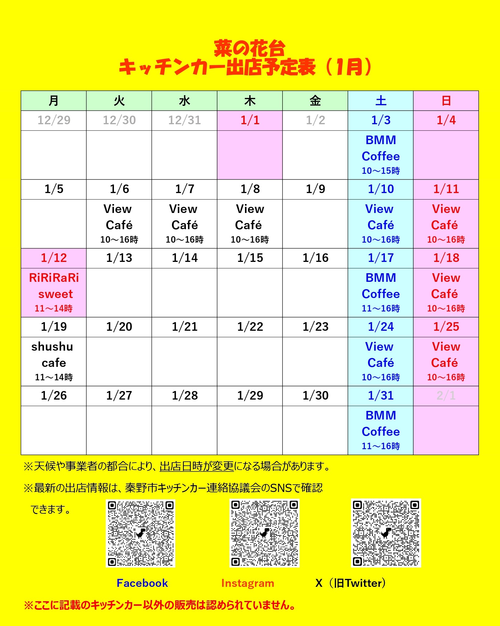 2026年1月のキッチンカーの出店予定ができましたので、お知らせします。