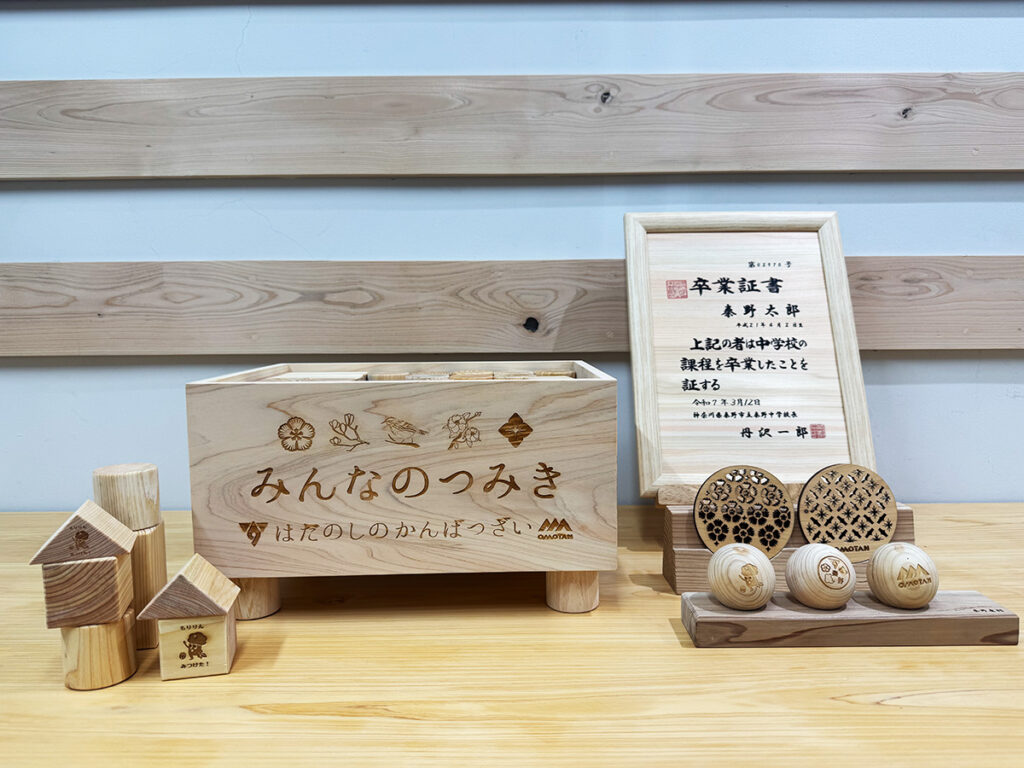 具体的には、出生届を提出した人に「ヒノキ玉」、中学校では「木の紙」を使用した卒業証書、婚姻届を出した人に「ペアコースター」、敬老祝いに「写真立て」をプレゼントするなど、人生の節目に木と触れ合う機会を設けています。 また、市内の公共施設などにも、秦野産の木で作られたイスやベンチが設置され、市民が自然と木に親しめる環境づくりが進められています。