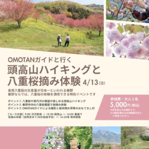 【2025年4月13日(日)開催】OMOTANガイドと行く 頭高山ハイキングと八重桜摘み体験表丹沢の魅力を知り尽くしたOMOTANガイドが、春爛漫の頭高山ハイキングと秦野市内の八重桜農園で桜摘み体験をできる特別イ […]
